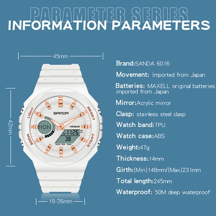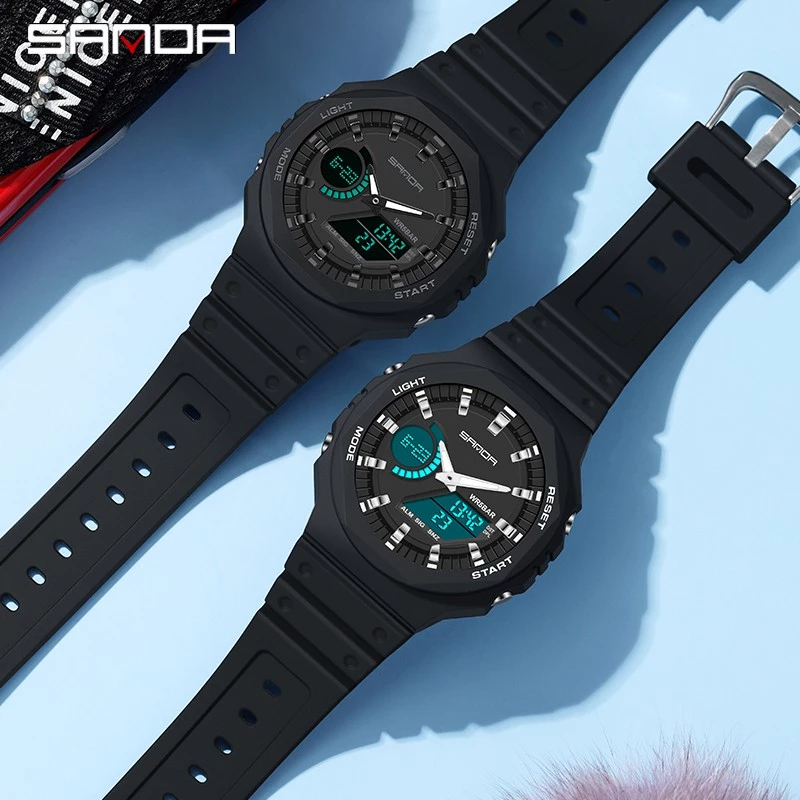 SANDA 6016 Jam Tangan Pria Wanita Digital Sport EL Backlight Tali Rubber Anti Air CURRENOS