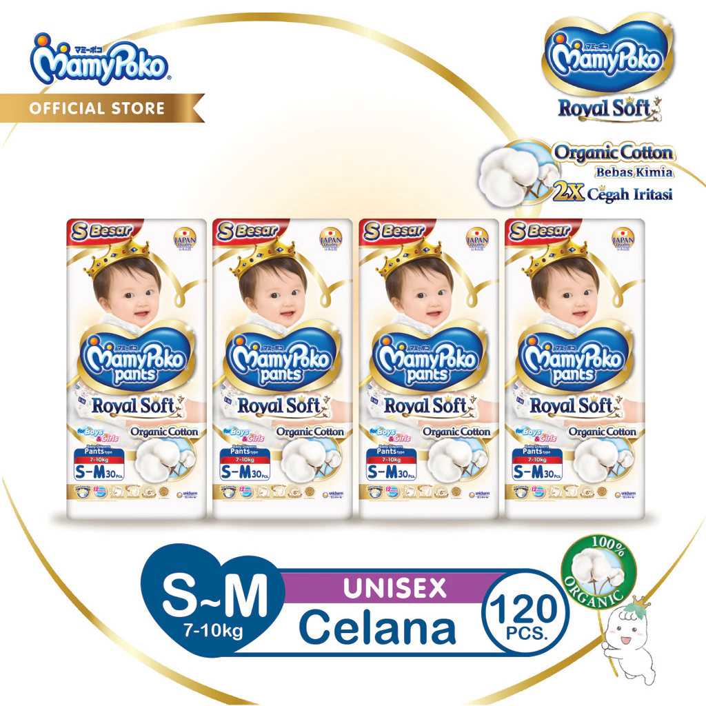 MamyPoko Pants Royal Soft Organic Cotton Ukuran S-M (S Besar) Isi 30/44 - Popok Celana
