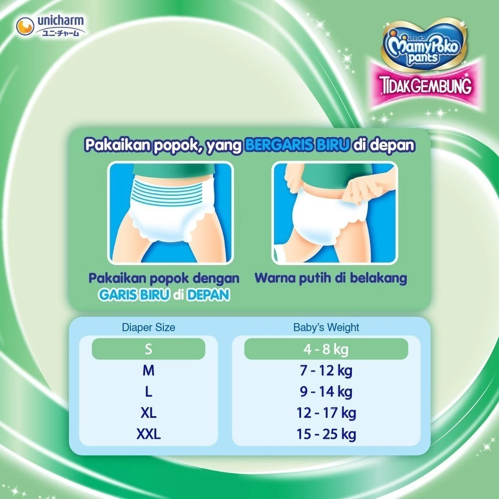 MamyPoko Pants X-Tra Kering Slim Tidak Gembung Ukuran S Isi 32 - Popok Celana