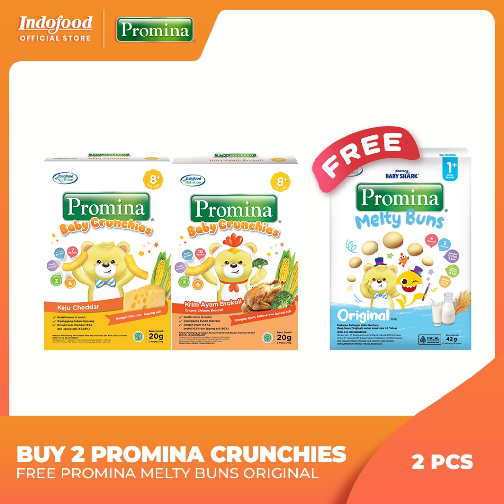 3 PCS - Promina Crunchies Mix Flavor 20 Gr + Melty Buns Original 42 Gr