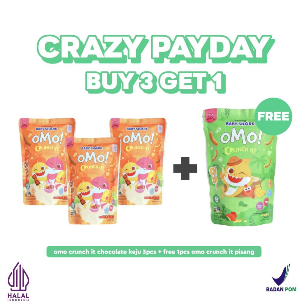 [CRAZY PAYDAY] BELI 3 GRATIS 1 OMO CRUNCH IT 25g - Omo Brunch it Baby Shark Choco Cheese | Snack Mpasi Bayi | Cemilan Mp