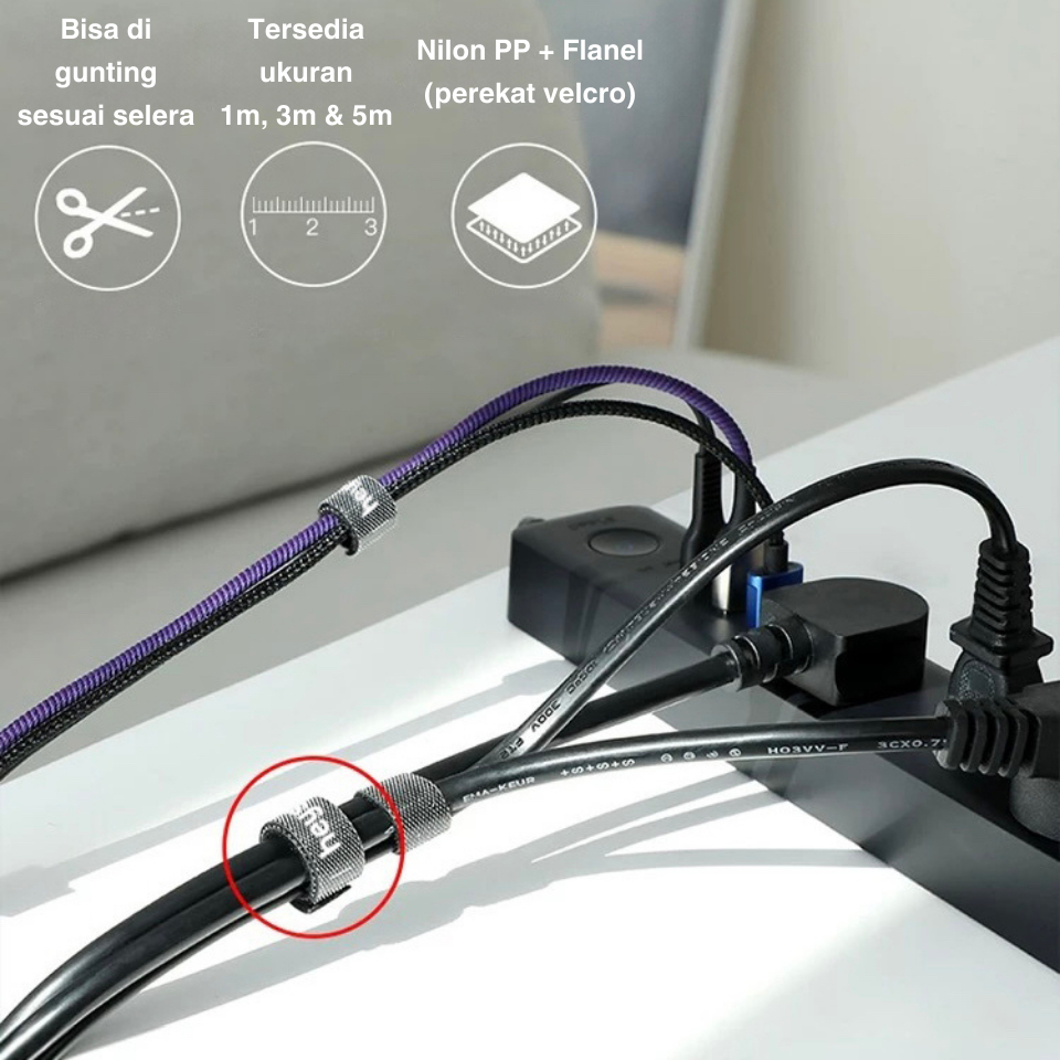 Pengikat Kabel Perapih Kabel Strap Organizer Cable Velcro Penggulung Kabel Perekat Kabel Alat Untuk Merapihkan Kabel