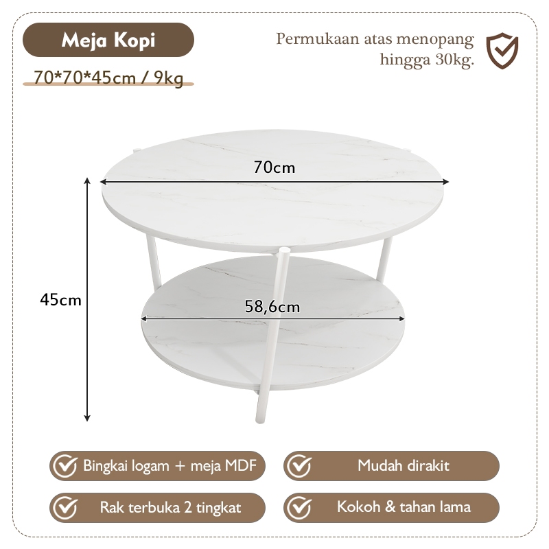 Meja Kopi Minimalis Multifungsi/Meja Tamu Minimalis estetik/Meja Tamu Kayu Bulat/Meja Sofa/Terbaru Best Seller Murah