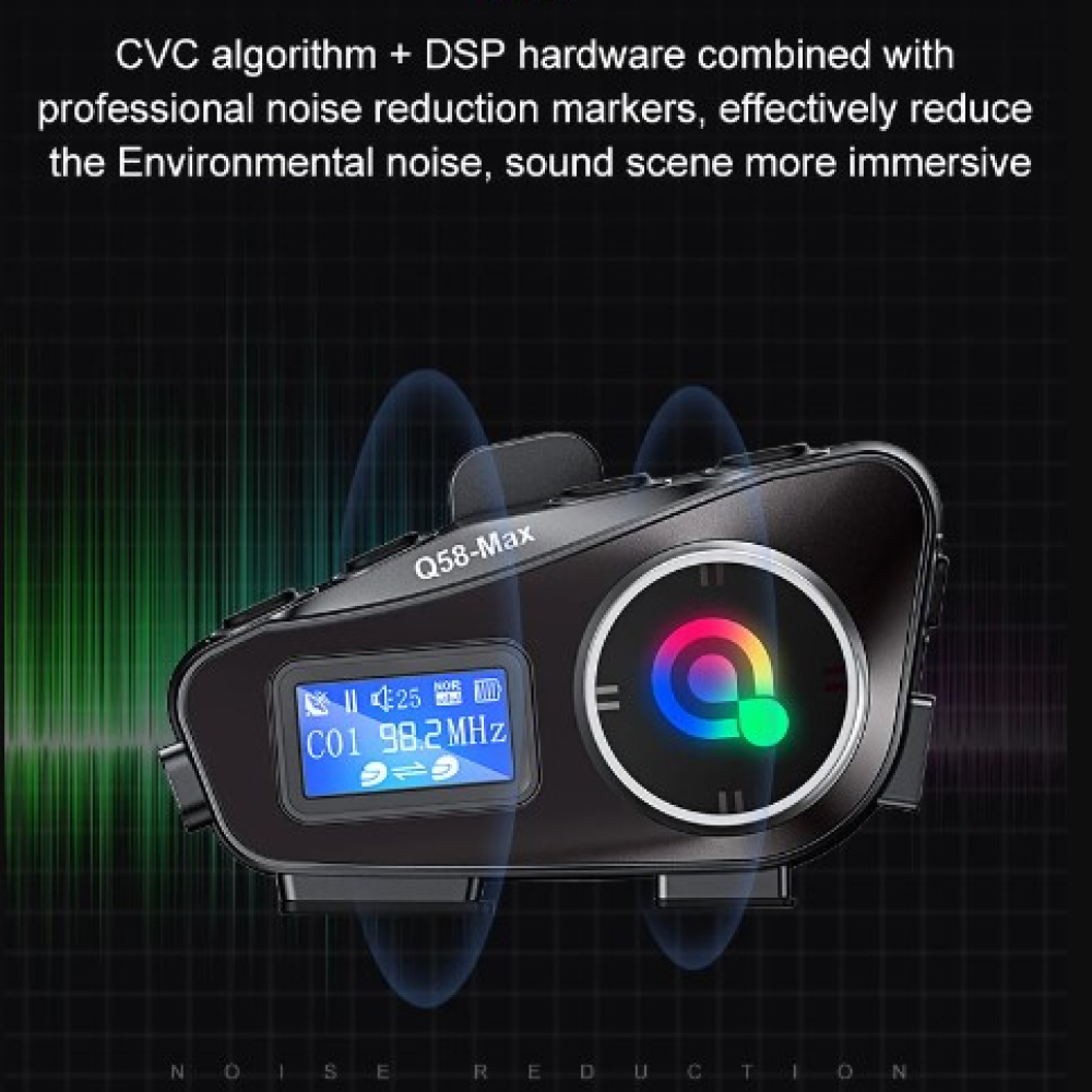 Intercom Helm Bluetooth Headset Helmet Motorcycle with LCD Display Q58 MAX - Black