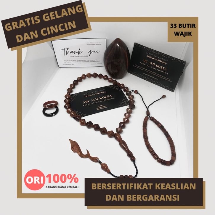 TERLARIS PREMIUM QUALITY Tasbih Kokka Bersertifikat Asli Butir 33 Motif Wajik Bandul Kujang Tasbih Kaukah edadb