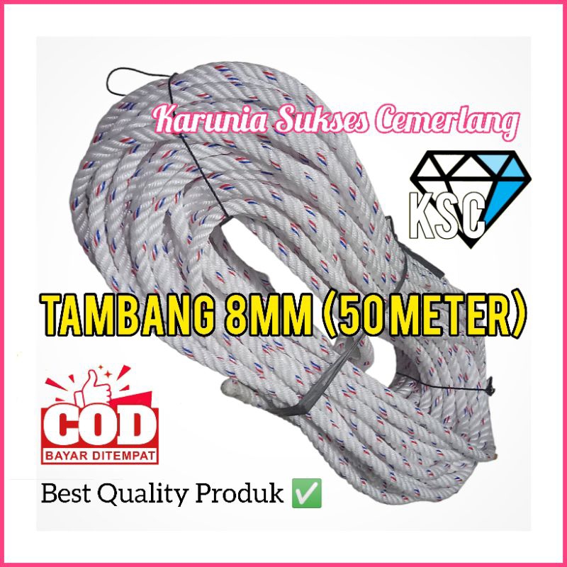 Tambang 8MM (50 Meter) / Tambang PPD 8MM / Tambang Mobil 8MM / Tampar 8MM / Tali 8MM / Tambang Kiloan / Tambang Eceran /
