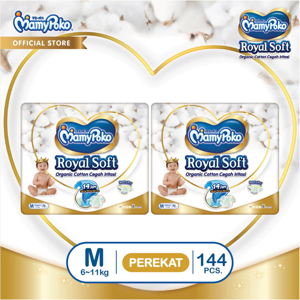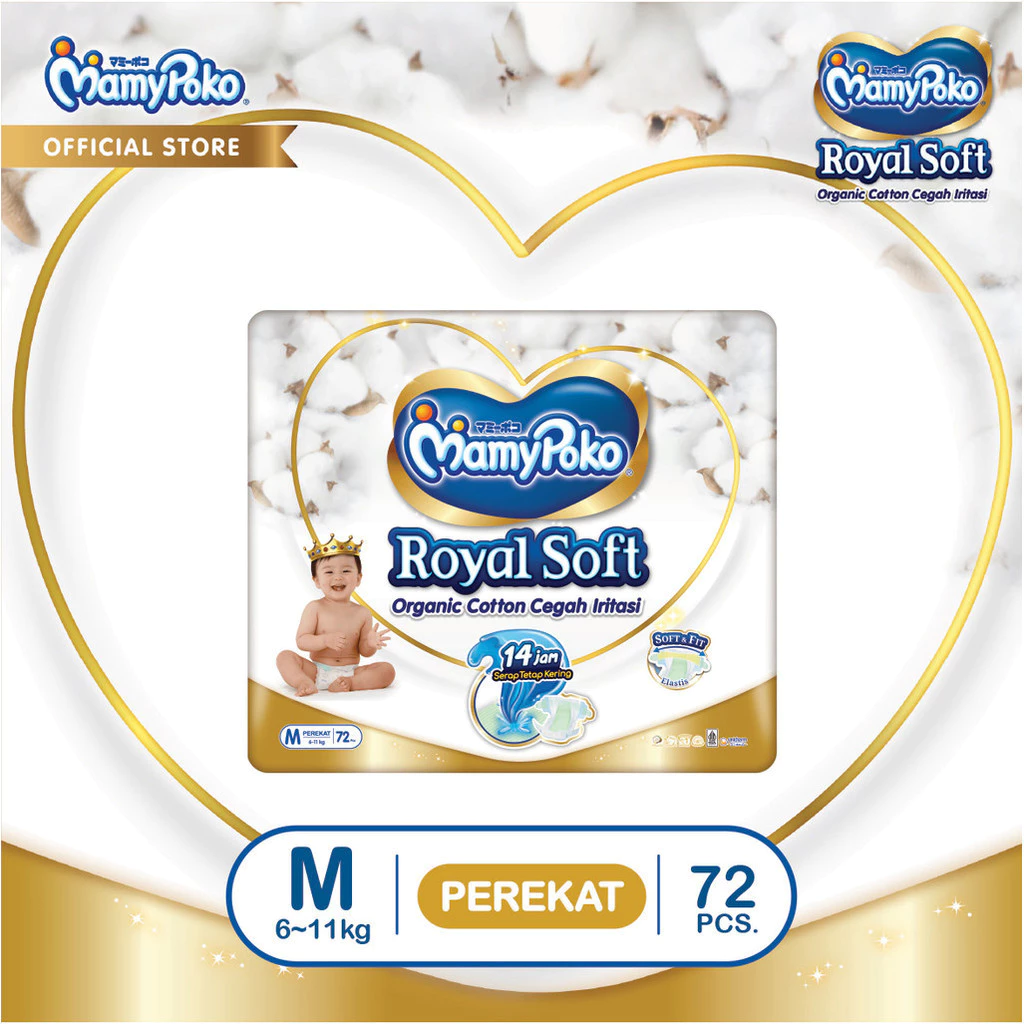 MamyPoko Royal Soft Organic Cotton Ukuran M Isi 72 - Popok Tape / Perekat