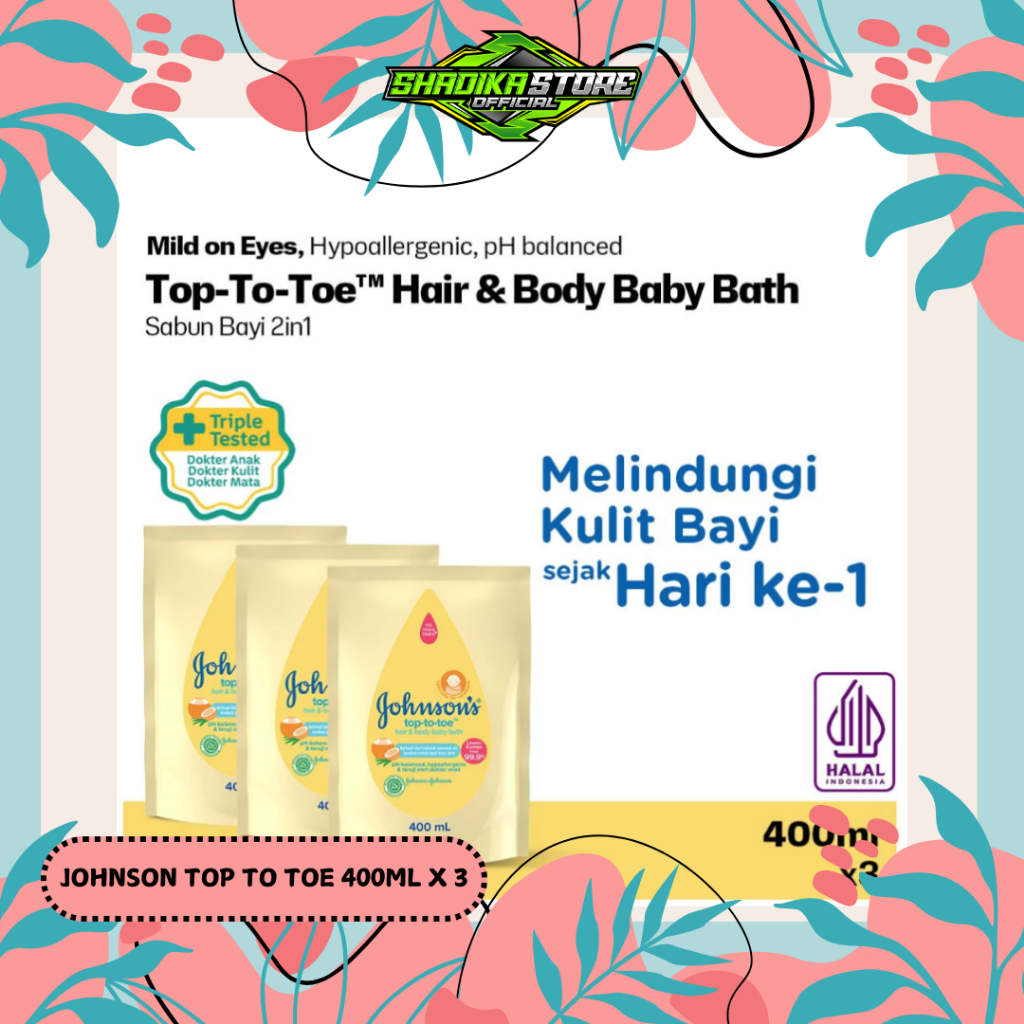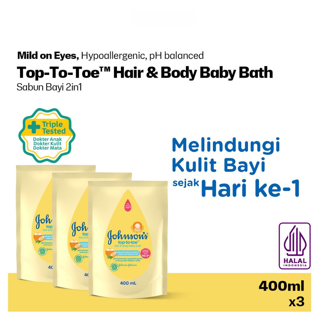 [Triplepack] JOHNSON'S Top-to-Toe Hair & Body Baby Bath - Sabun Bayi 2in1 Refill 400ml - Isi 3