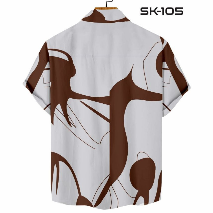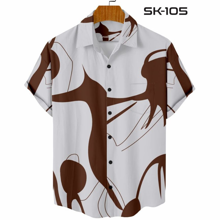 Kemeja Kasual Tangan Panjang Dan Pendek Abstrak Modern Coklat Putih SK - 105