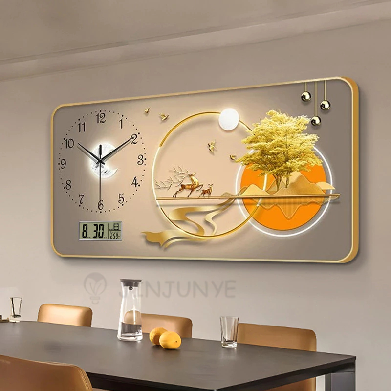 Jam Dinding Ruang Tamu Minimalis Rusa Hiasan Aesthetic 100x50cm Dekorasi Rumah Mewah Lukisan Krystal Porselin Wall Decor