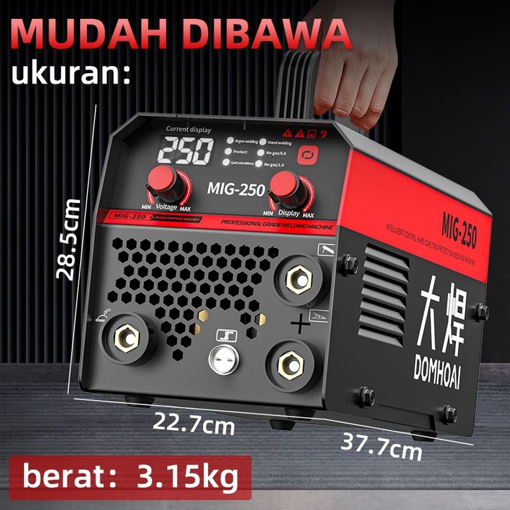 DOMHOAI Mesin Las Mig-250 3IN1 Las Listrik Profesional Inverter Mesin Las Tampilan Digital Definisi Tinggi