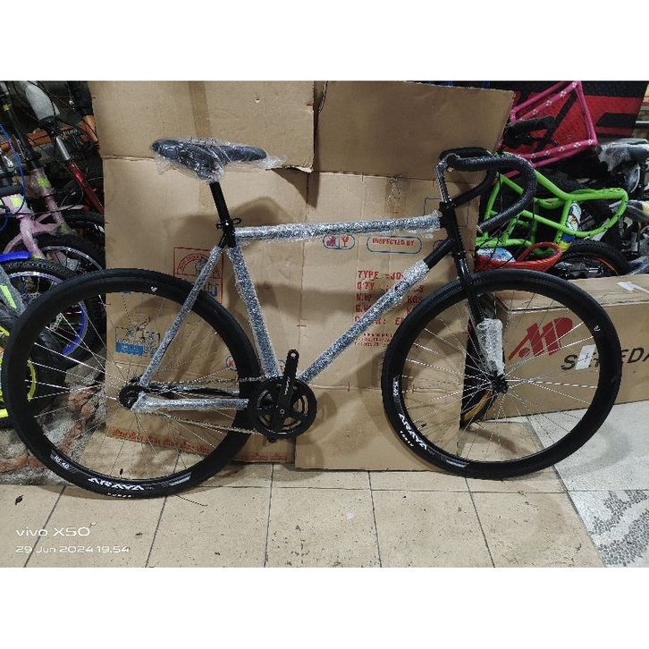 sepeda fixie 700c batangan lokal velk araya ks40 dan fullbike fixie pro rem terpedo dan hub doltrap