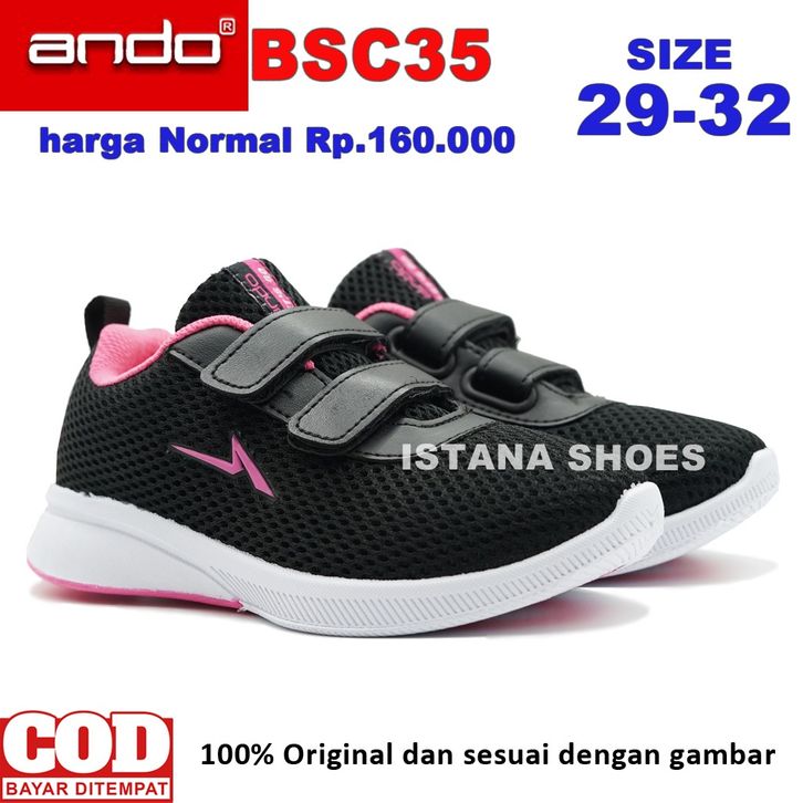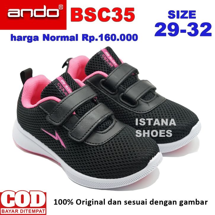 Sepatu Sekolah Anak Perempuan PAUD TK SD ANDO SIP 35 Hitam Pink Perekat Sneakers Hitam