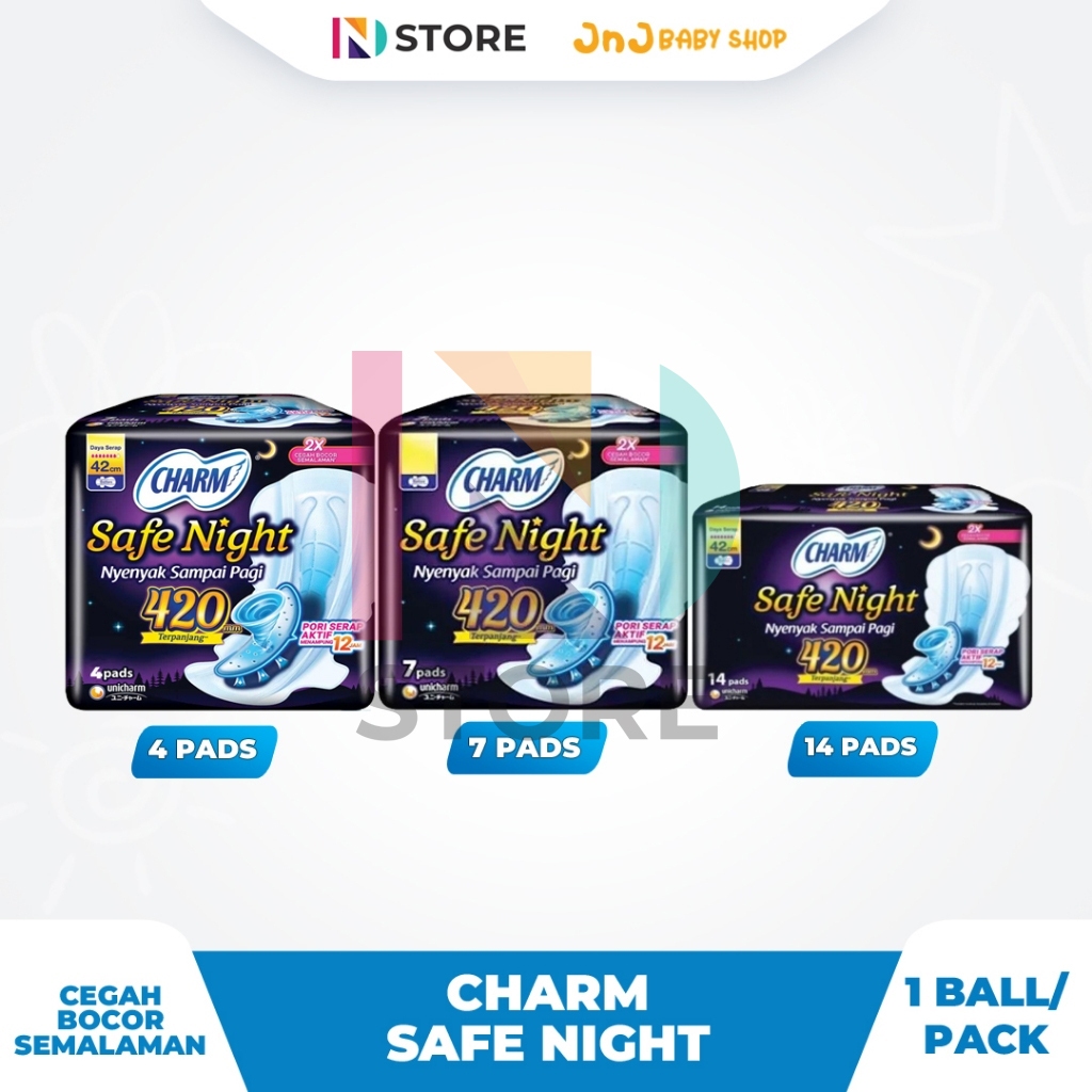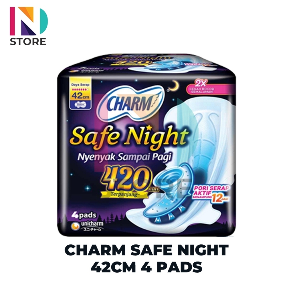 Charm Safe Night 42cm Isi 4 Pads/7 Pads/14 Pads (1 Pcs/pack) Pembalut