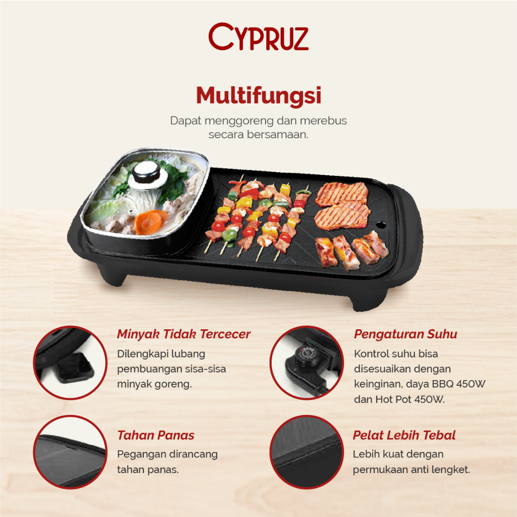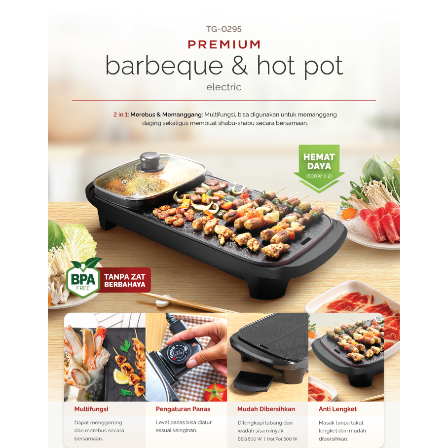 Panggangan Elektrik Grill GPan BBQ Hotpot 2 in 1 Pemanggang Anti Lengket Garansi Resmi