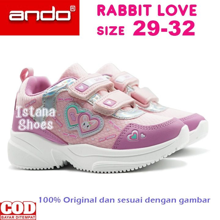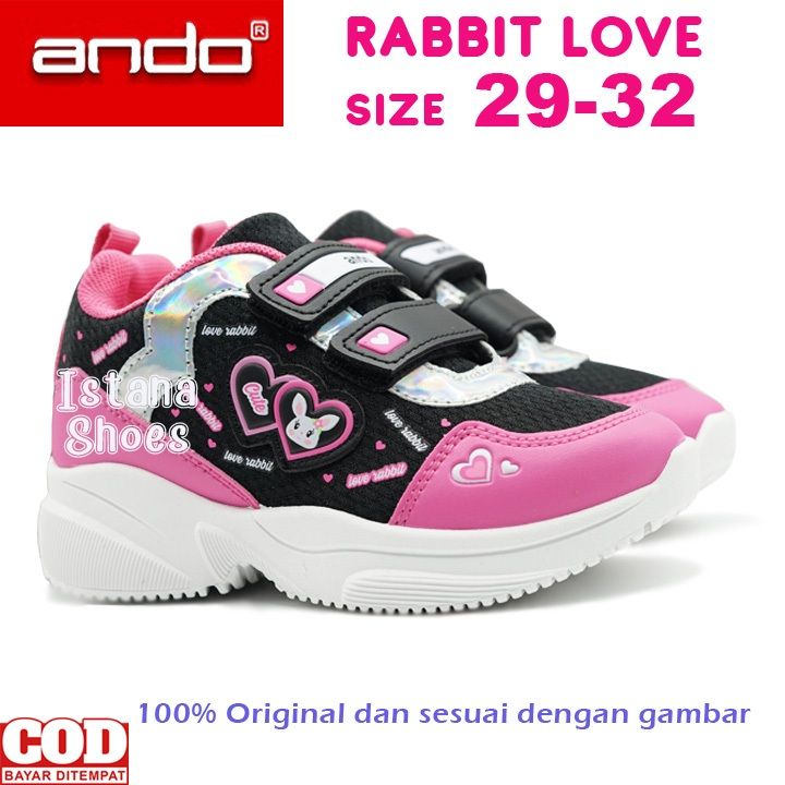 TERBARU !!! Sepatu Sekolah Anak Perempuan PAUD TK SD Ando Rabbit Love, Sepatu Anak Perempuan Balita Usia 2 3 4 5 6 7