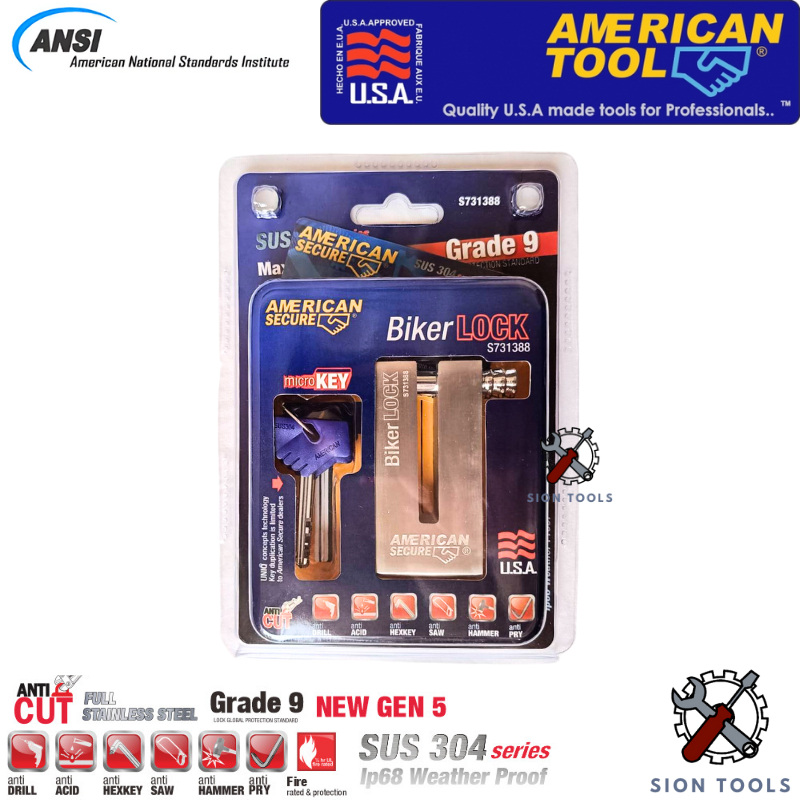 American Secure Gembok Cakram Motor Gen 5 Anti Maling Disc Brake Lock Standard Type-U Mini Tank