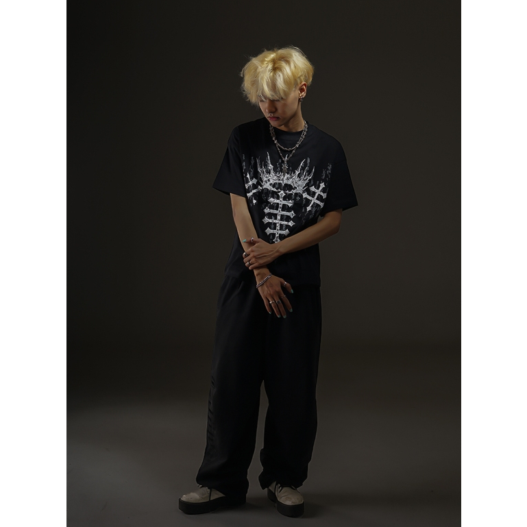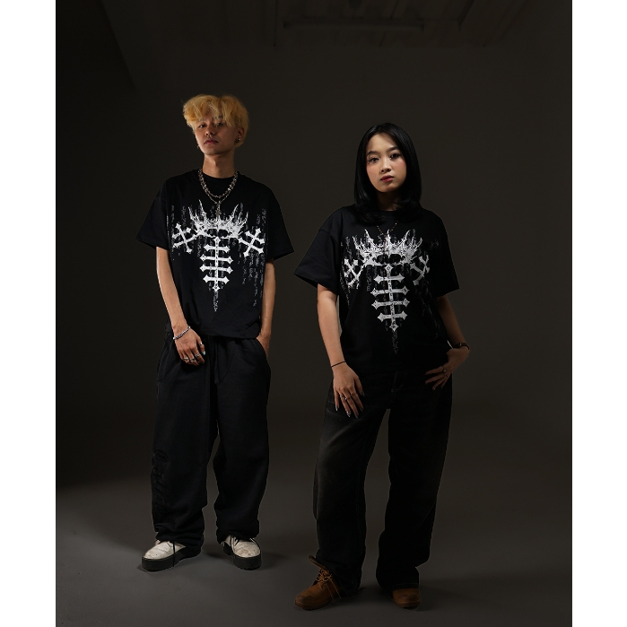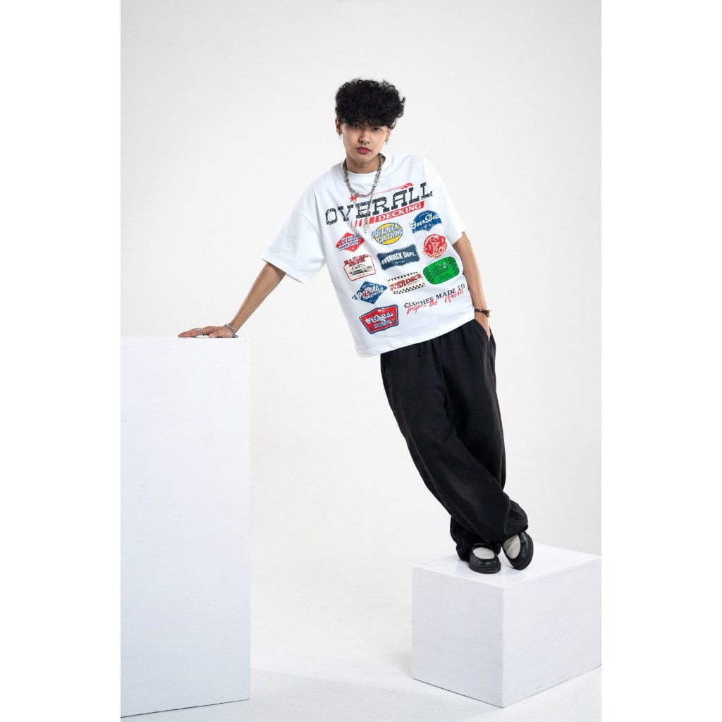Kaos Pria Distro Bandung OverallDecking Boxy Cut T-Shirt Cotton 20s Kaos Pria dan Wanita Stamps Black