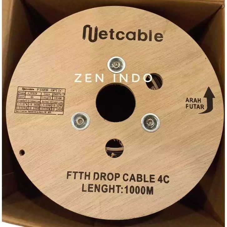 Kabel FO Fiber Optik Dropcore 4 Core 3 seling 4 Core 3 Sling Core 4 3 Sling Outdoor 1000 Meter Spectra Vacolink dll - AM