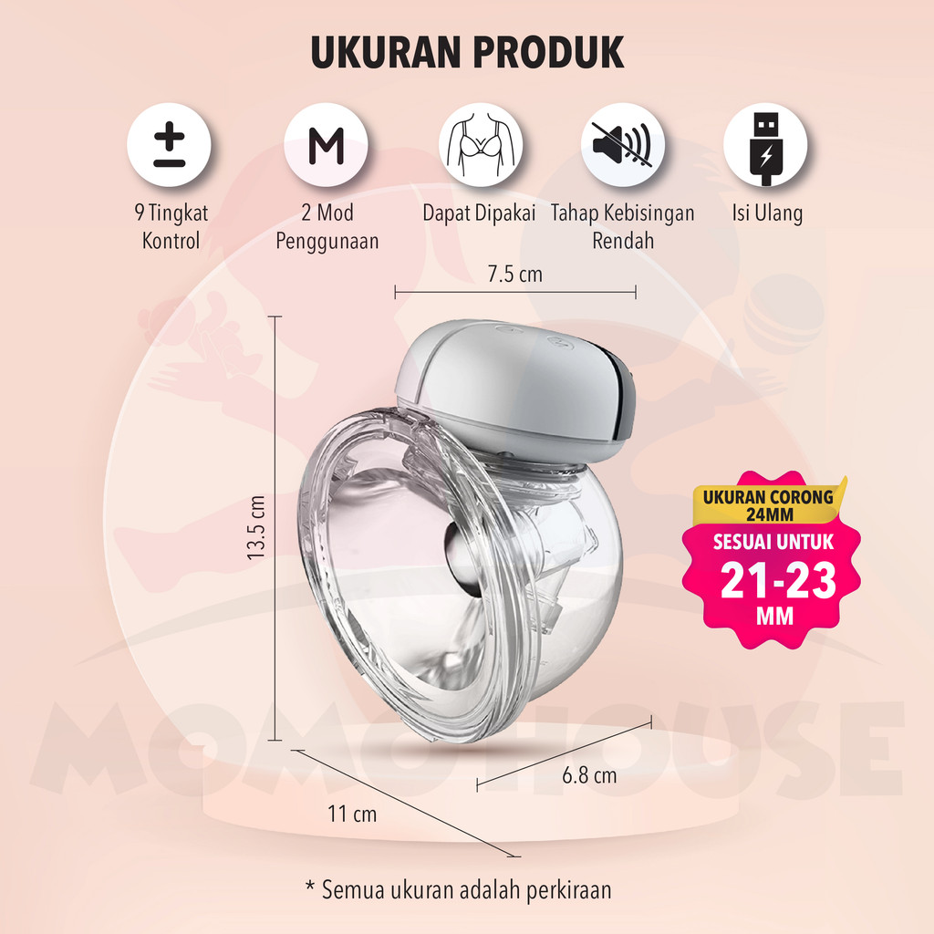 MOMO HOUSE Pompa Asi Elektrik Handsfree Breast Pump Portable Pumping Asi Bebas Genggam Wearable Wireless Dual e