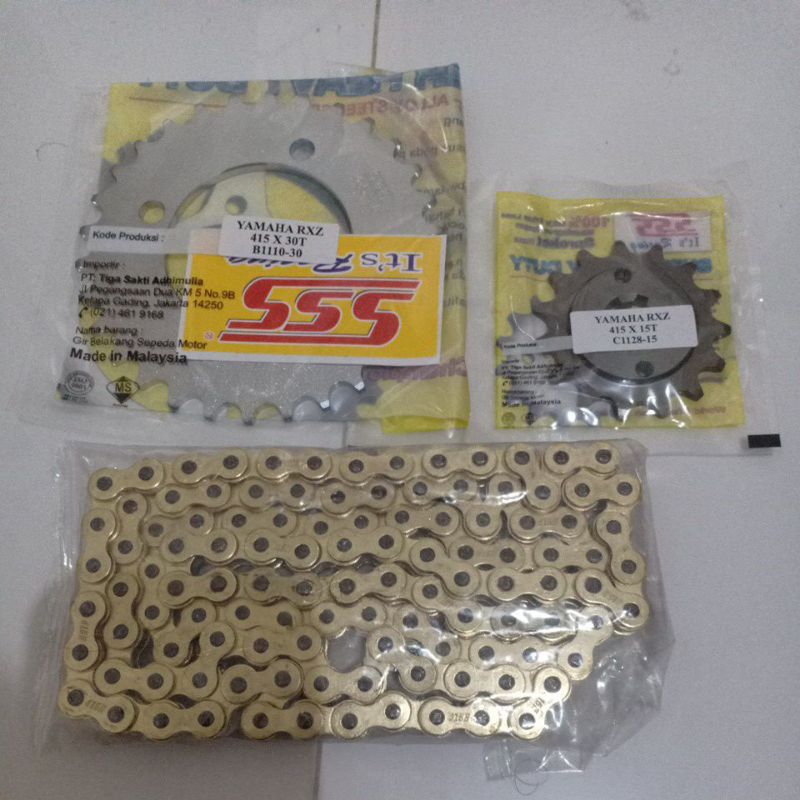 Gear Gir Set SSS 415+26s/d41 Rantai Gold RXZ/Vega/Vega R New/Jupiter Z/Burhan/Force1/F1ZR/RXKing/MX Lama/MX New135/Alfa/