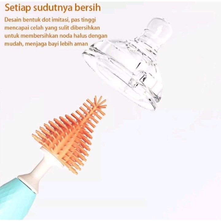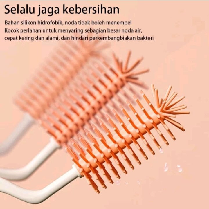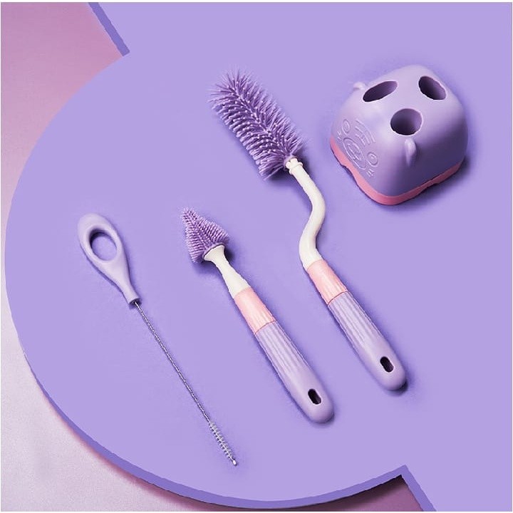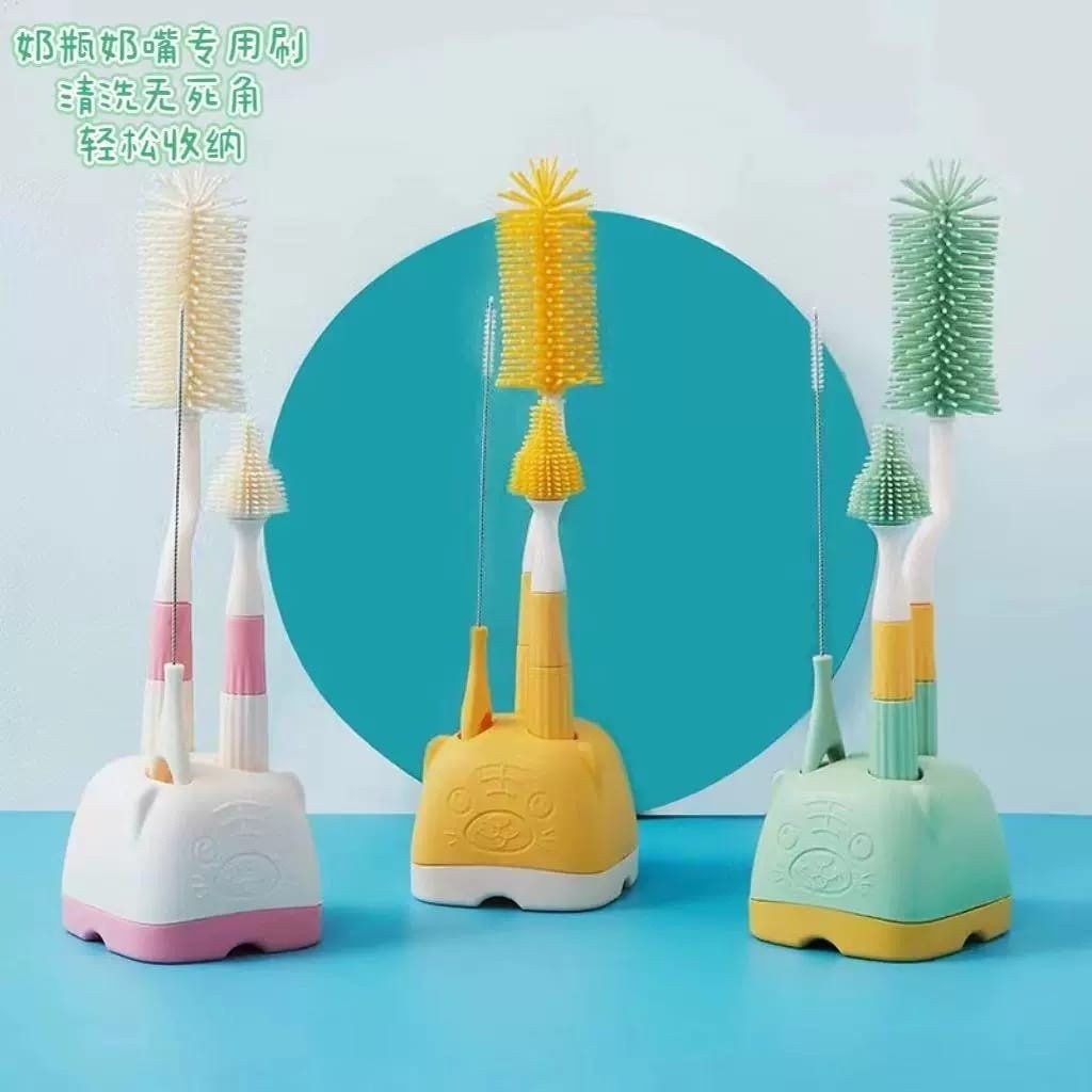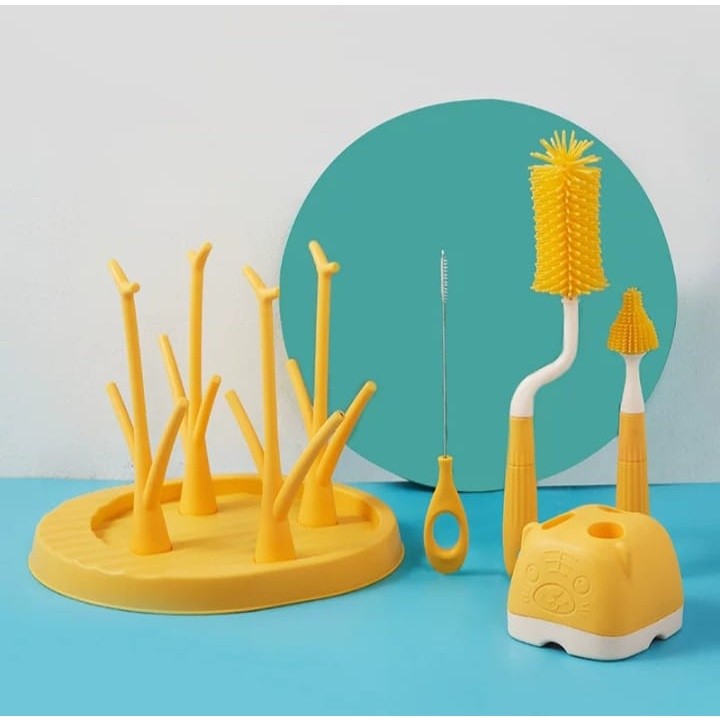 Sikat SILICON Botol Minum Bayi Anak Balita Sikat Botol + Tutup + Sedotan+Rak Pengering Lengkap Portable (4 pcs in 1 set)