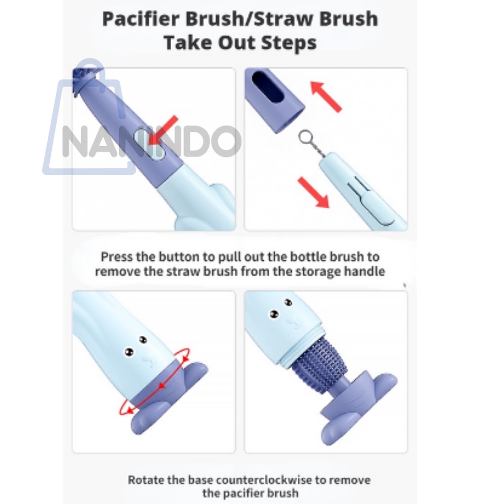 Sikat Pembersih Botol Susu Bayi 4 in 1 Multifungsi Bahan Silikon BPA FREE Dapat Berputar 360 Derajat