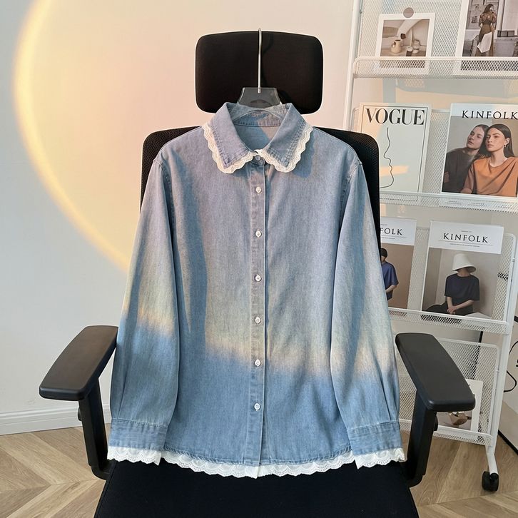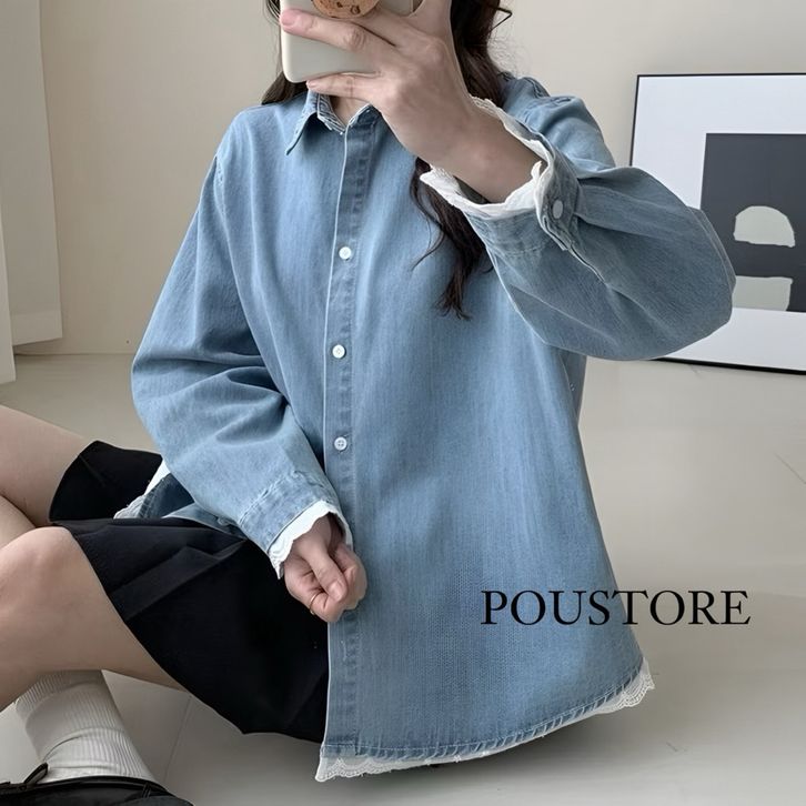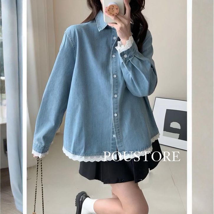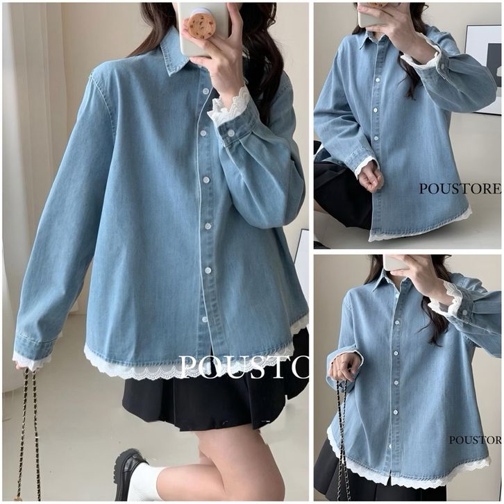 ATASAN LENGAN PANJANG WANITA / RENDA DENIM SHIRT