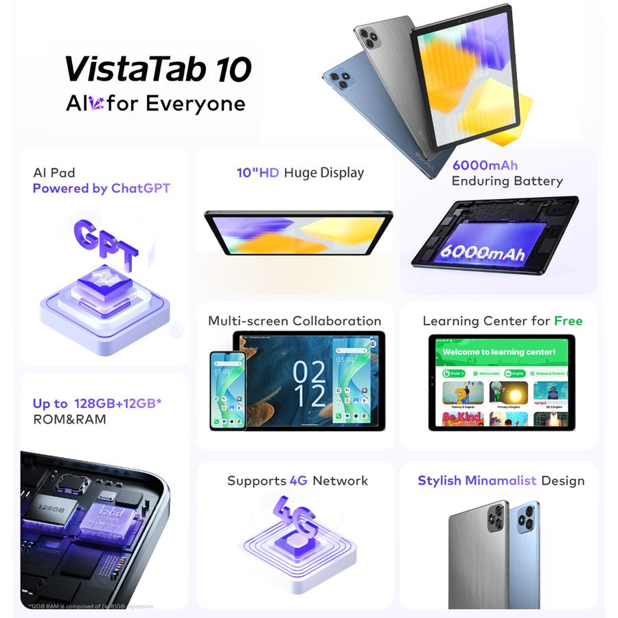 itel VistaTab 10 Tablet- 4GB+128GB - 10.1" HD+ IPS Display Screen - 6000mAh - Dual Speakers- AI Assistant
