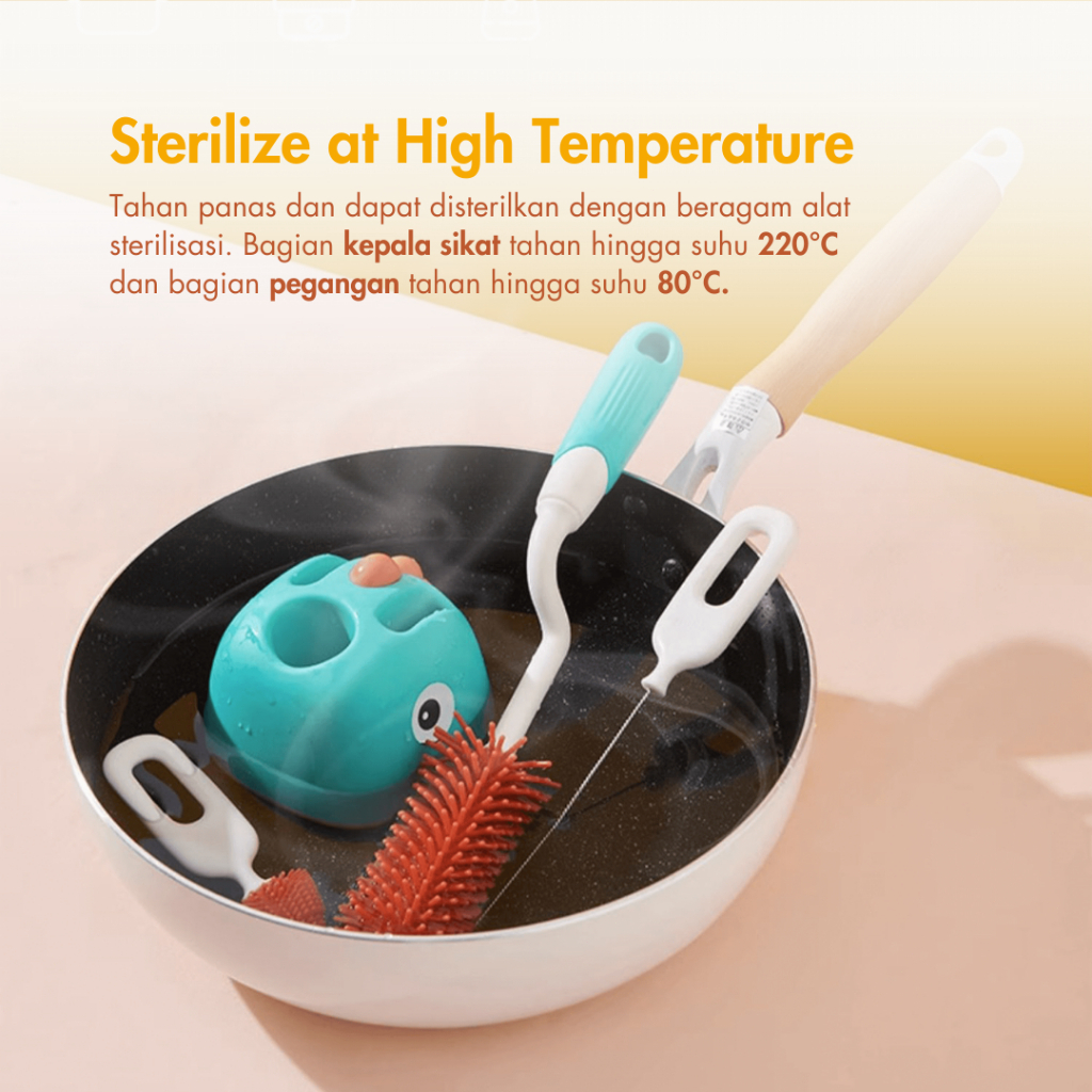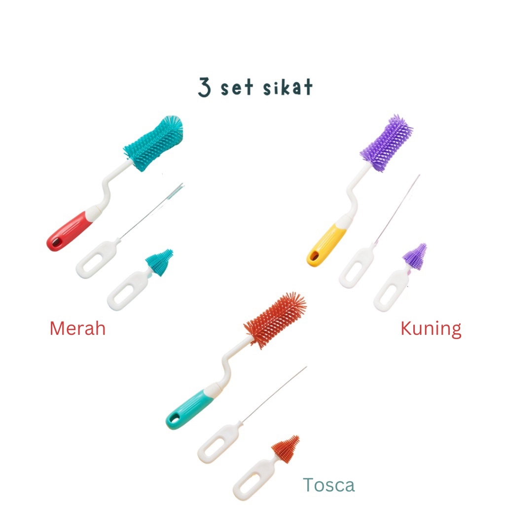 Baby Silicone Bottle Brush - Sikat Pembersih Botol, Sedotan Bayi 3 in 1 - Pembersih Alat Dot M021