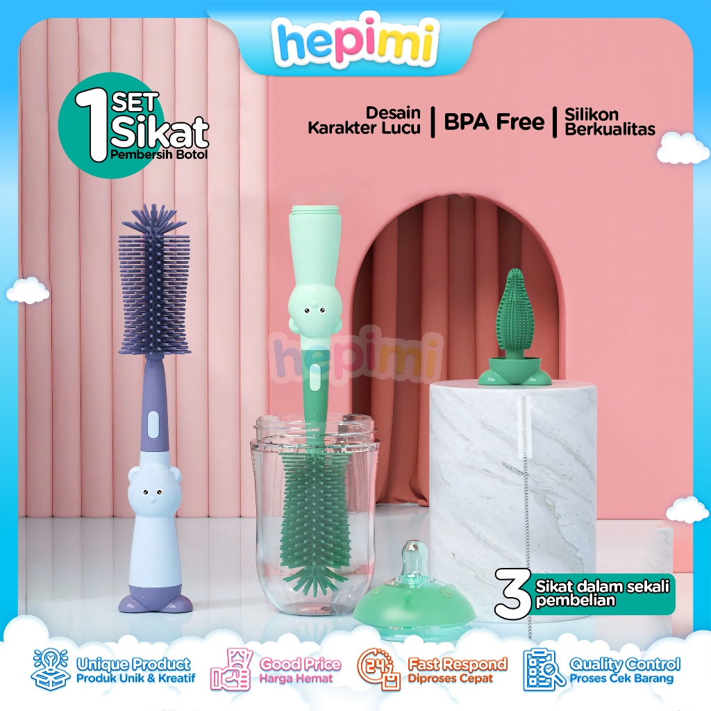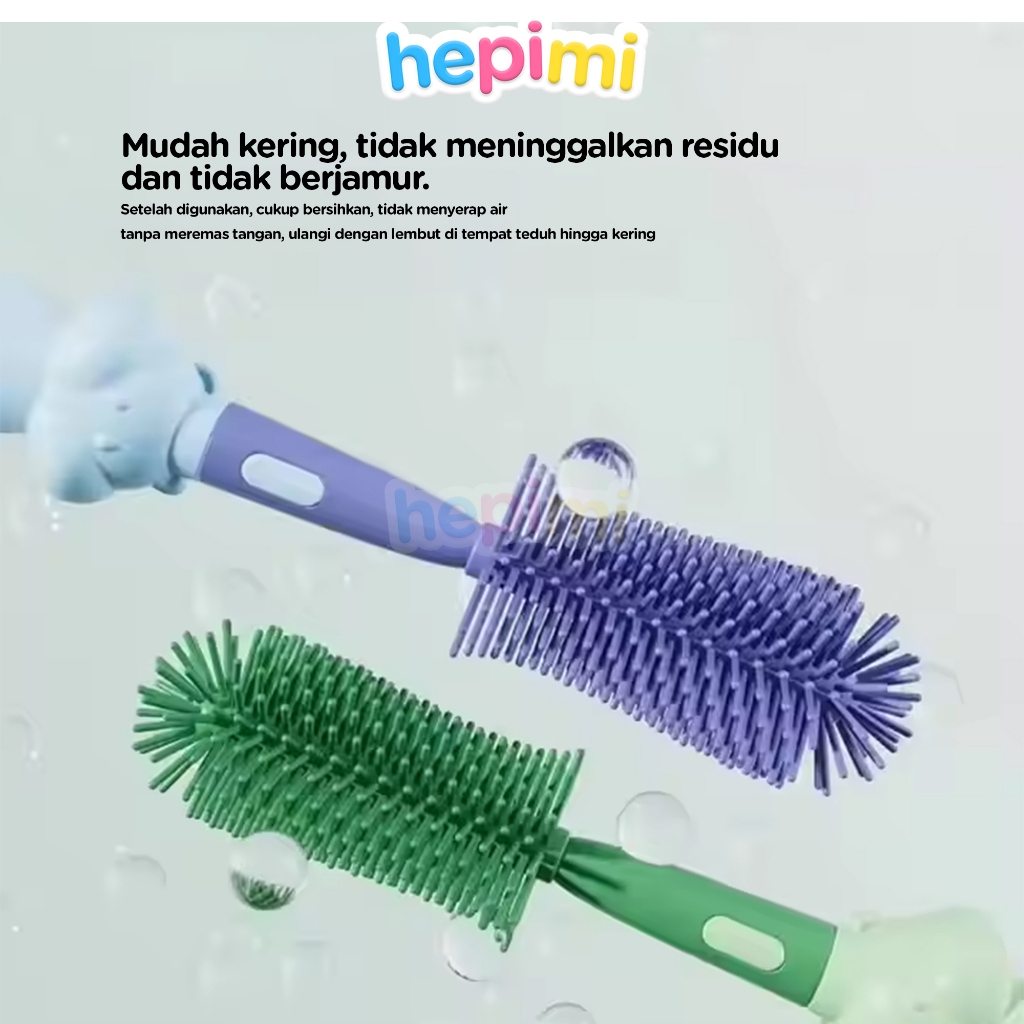 Sikat Pembersih Botol Susu Bayi Silikon 3 In 1 Karakter Lucu Serbaa Bpa Free - HM