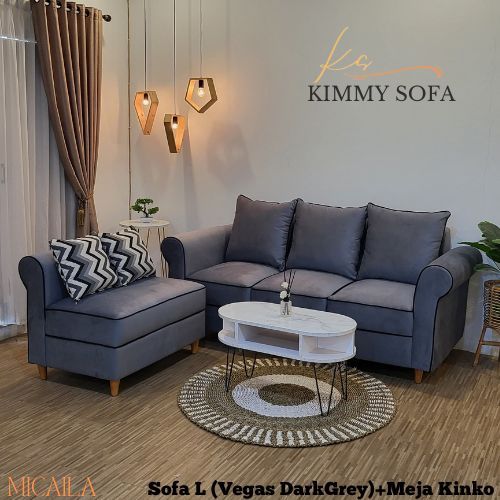 Sofa Ruang Tamu Minimalis Mewah/Sofa Minimalis Modern Terbaru/SOFA L Retro Classic Bludru Micaila Ukuran 205cm