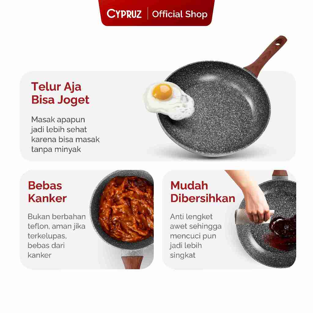 Panci Set Anti Lengket Cypruz Grey Marble Series 7pcs Granite Original Memasak Tanpa Minyak Wajan Anti Lengket Termurah