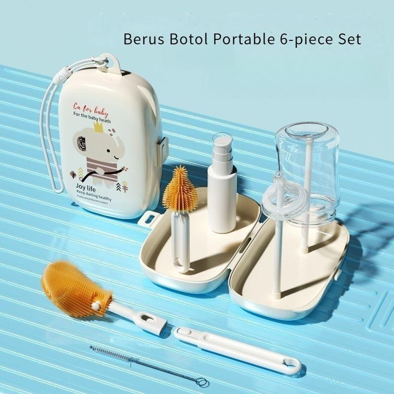 Sikat botol susu bayi 6 in 1 sikat botol travel Pembersih botol susu bayi -sikat botol bayi Newborn Baby Bottle Cleani