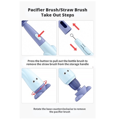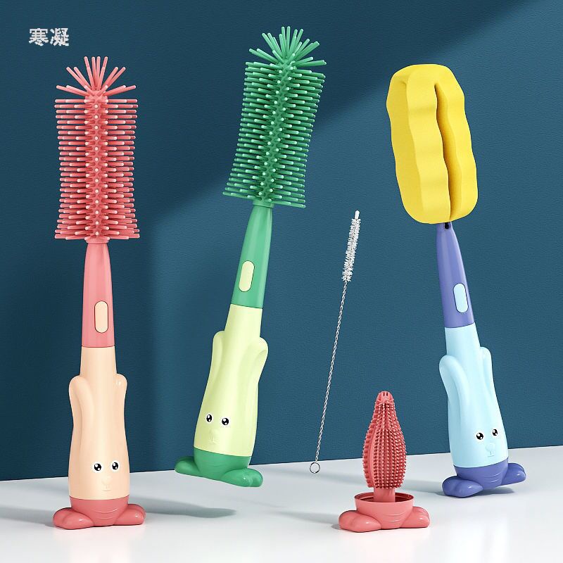 Sikat Pembersih Botol Susu Bayi 4 in 1 Multifungsi Bahan Silikon BPA FREE Dapat Berputar 360 Derajat