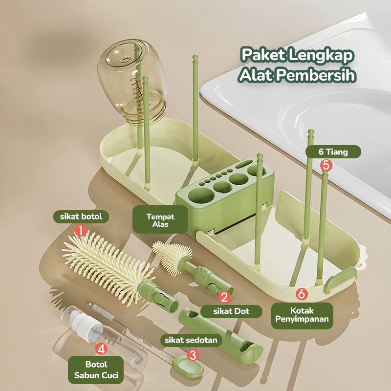 Momosee Sikat Botol Bayi 6 in 1 Set Travelling Sikat Botol Susu Portable Multifungsi BPA Free XH055