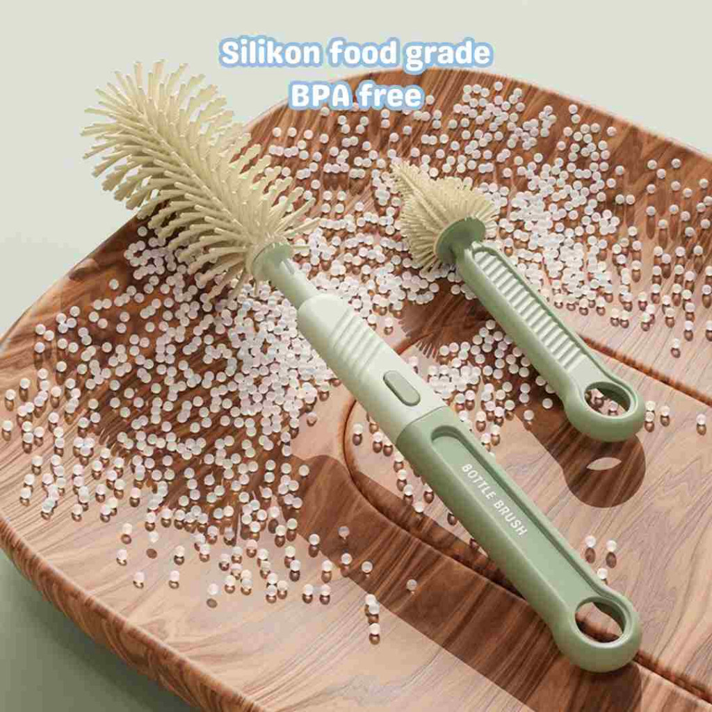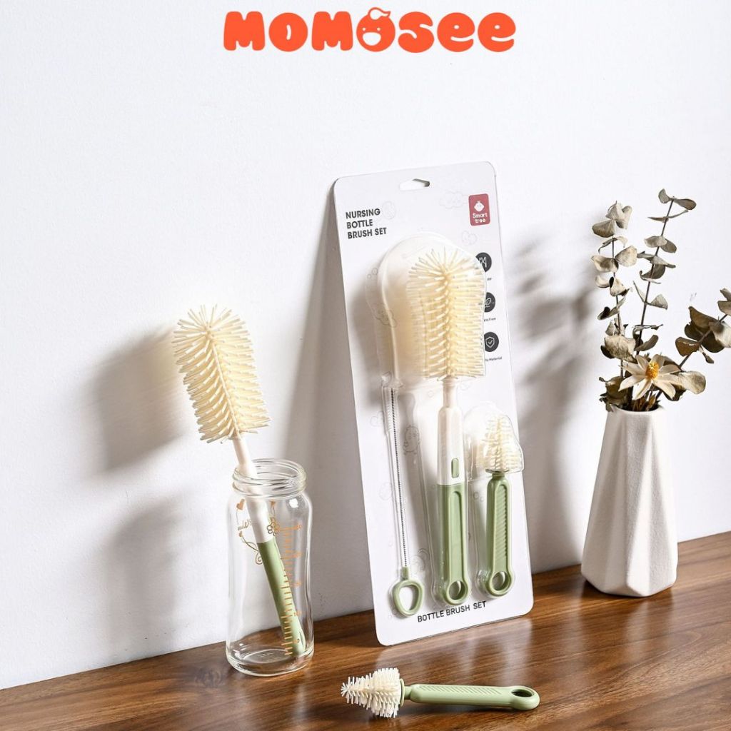 Momosee Set Sikat Pembersih Botol Bayi 4in1 Sikat Botol Dot Silikon Lembut XH11