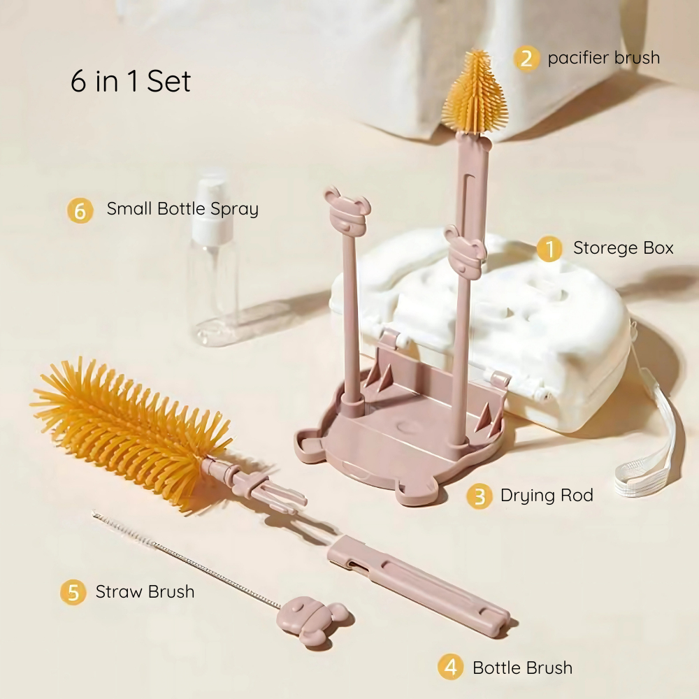 Homebaby Set 6 IN 1 Sikat Botol Susu Bayi Sikat Botol Bayi Travelling Multifungsi Silikon PP