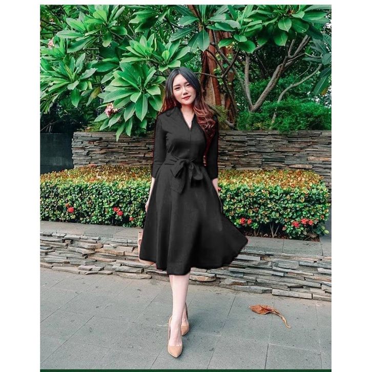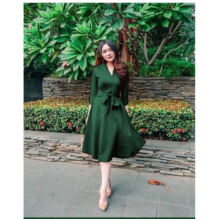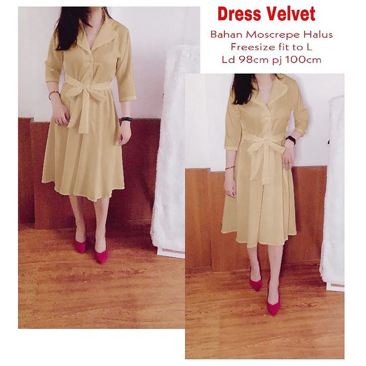 WSE390 - Dress Velvet Dress Wanita Dress Fit Kerah Bentuk V Kasual UK Fit L To XL LD 100 CM PJ 100