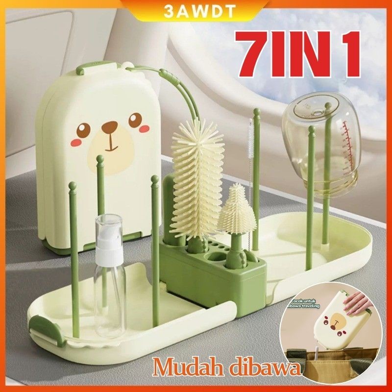 【】Sikat Botol Bayi 7 in 1 Set BPA Free Travelling Sikat Botol Susu Portable Multifungsi