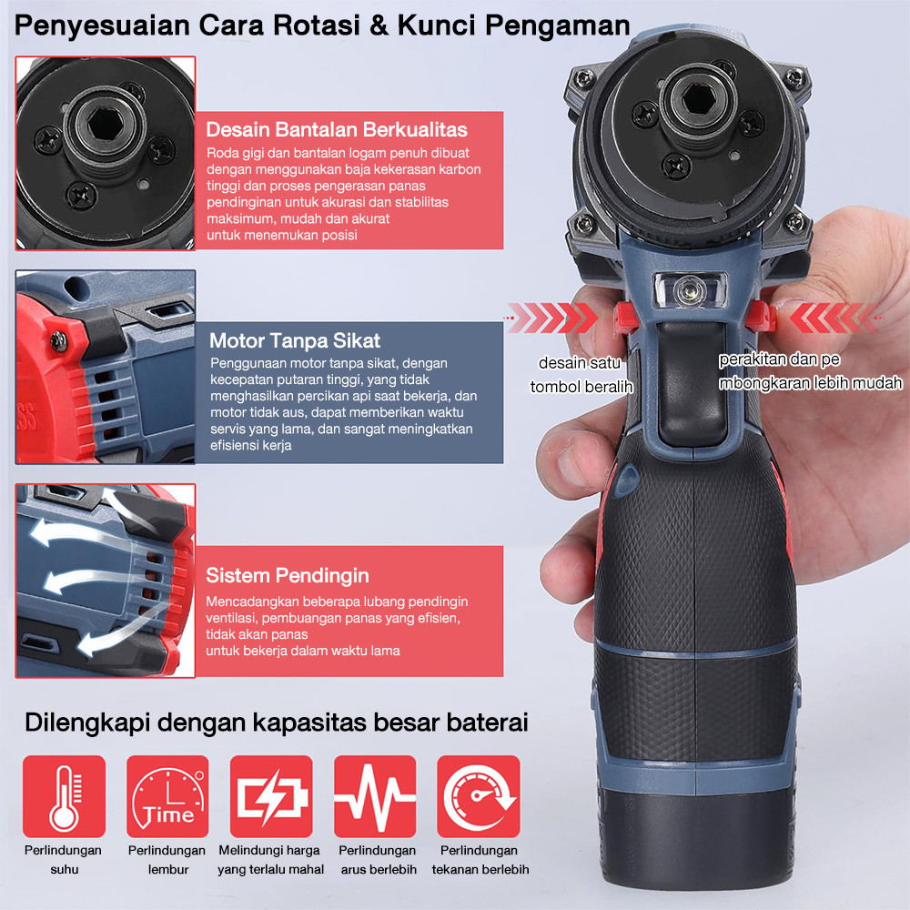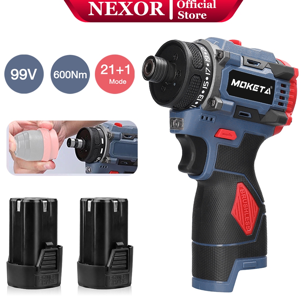 NEXER 99VF Brushless Obeng Lithium Kit Mesin Bor Baterai Tangan Cordless Drill Multifungsi