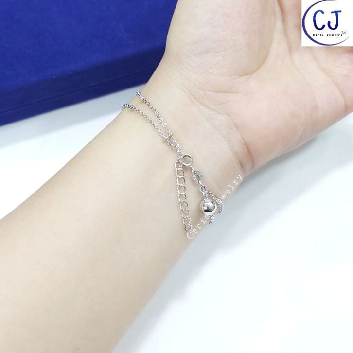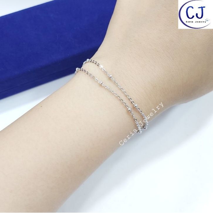Gelangg Tangan Perk Wanita Asli Silvr 925 Lapis Ems Putih Model Rantai Paper Clip - Perhiasan Perk Wanita