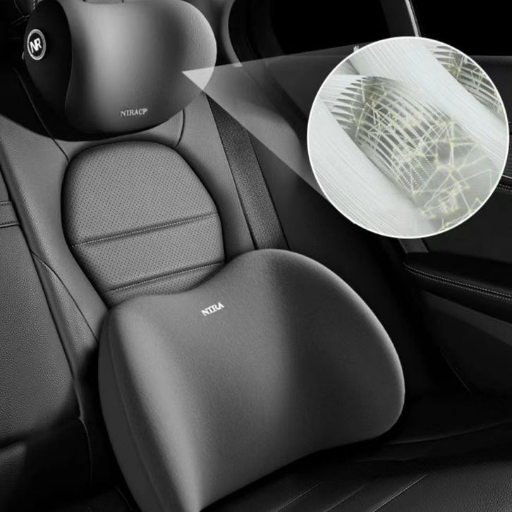 XYKJ Bantal Mobil Set Hitam ABU 3D Busa Memori Bantal Linen Kartun Punggung Leher Bantal Mobil