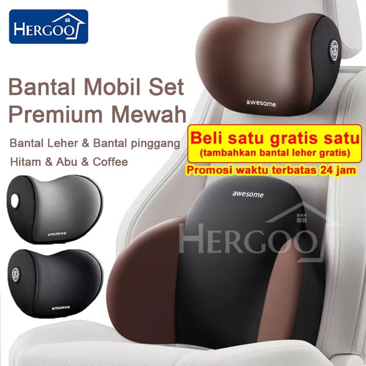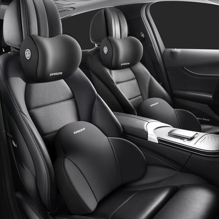 【 Ready】Bantal Leher Mobil Sandaran Leher Penopang Busa Memori Set bantal pinggang & Bantal Leher Mobil Kualitas Kulit