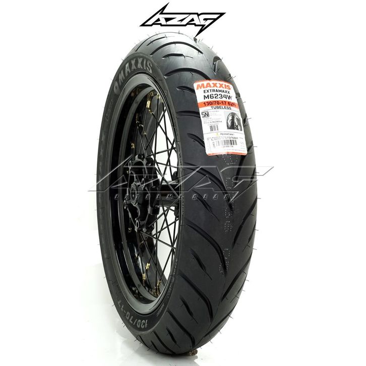 BAN SET SUPERMOTO CRF150 ROSSI TROMOL SCARLET 2TONE MAXXIS EXTRAMAXX