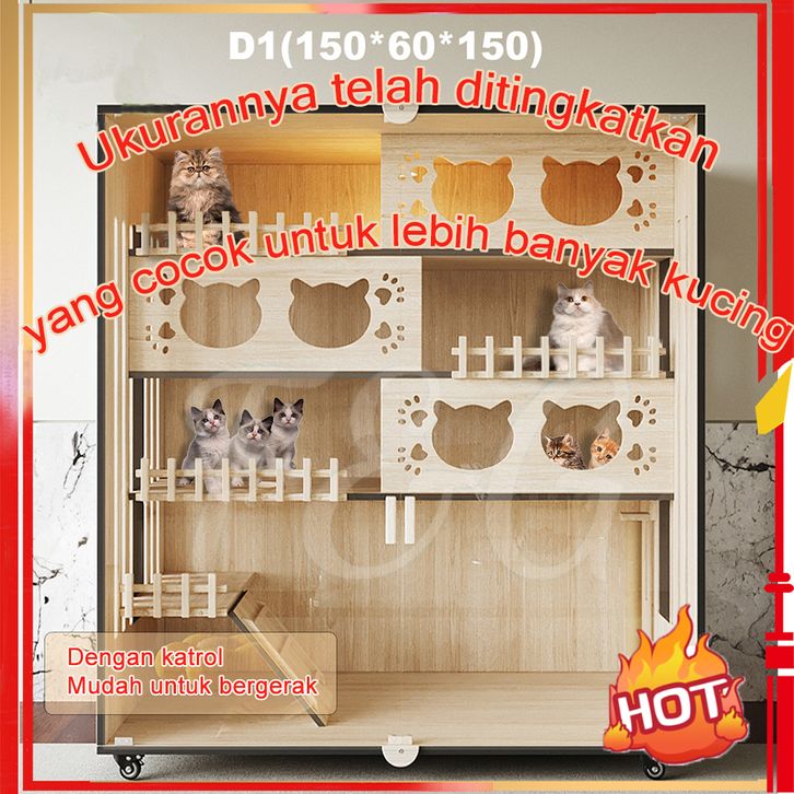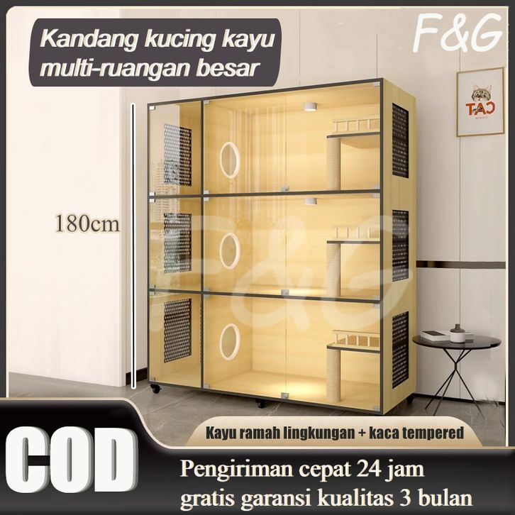 F&G Kandang kucing kayu berlapis-lapis Kandang kucing di toko hewan peliharaan Kandang yang dapat menampung banyak kuci