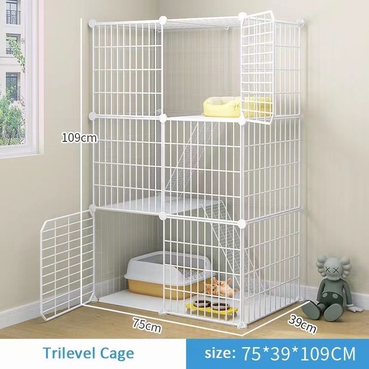 Kandang Kucing 3 Tingkat Set Kandang Kucing Kandang Anjing Pagar Kucing Anjing Pet Cage Pagar Besi DIY