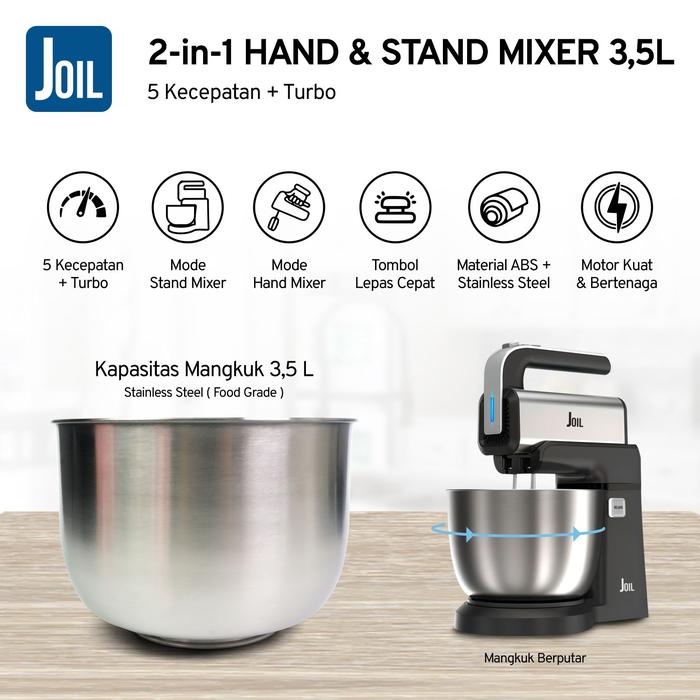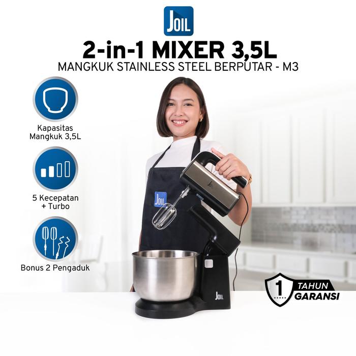 Joil Hand Mixer - Stand Mixer 3.5 Liter Bowl Stainless Steel 2in1 Mixer 5 Speed dan Mesin Turbo - M3