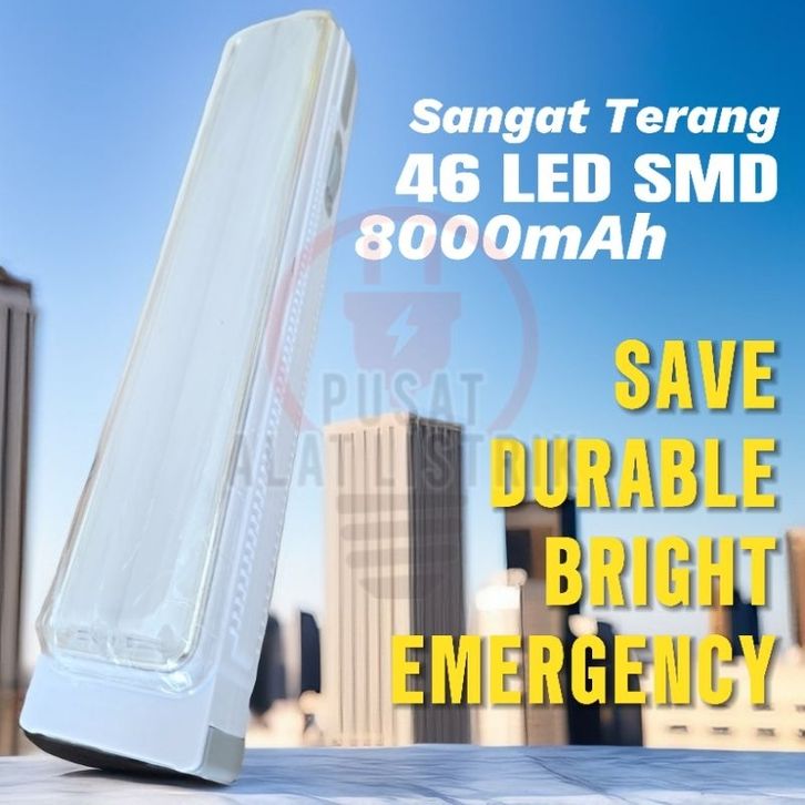 LAMPU EMERGENCY SANGAT TERANG 46 LED SMD 8000 MAH 2 TUBE CAS RECHARGEABLE EMERGENCY LIGHT LAMPU EMERGENSI LAMPU DARURAT