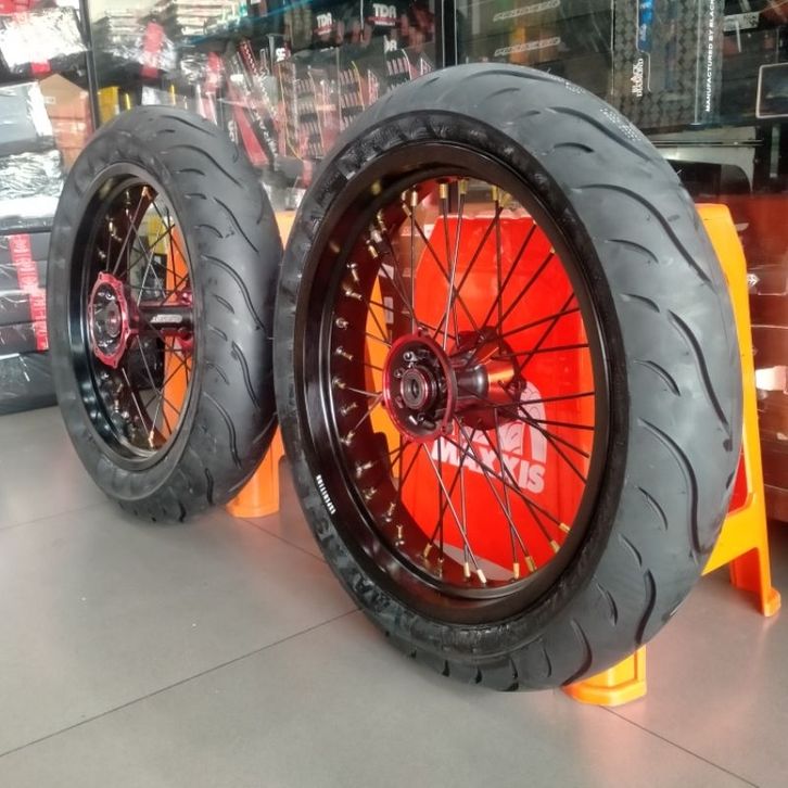 velg set Supermoto klx D-Tracker crf 150 wr155 plus ban maxxis 120 140 17